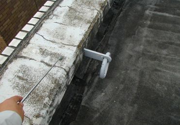 漏水が生じている室内側から診断用の香り混合気をコンプレッサーにより圧送します。屋上においてはあらかじめ漏水原因の可能性が高いと思われる数箇所をビニールで覆い、その中の空気の不純度を高性能臭気検知器で初期値として計測しておきます。香り混合気を圧送し始めると漏水原因箇所の測定値は初期値より大きく変化するため、そこと判断されます。(室内側のクロスやボードは調査の際、部分的に剥がしたりしますが、 現状復旧費用はお客様負担となり ます。) 報告書が必要な場合は別途
